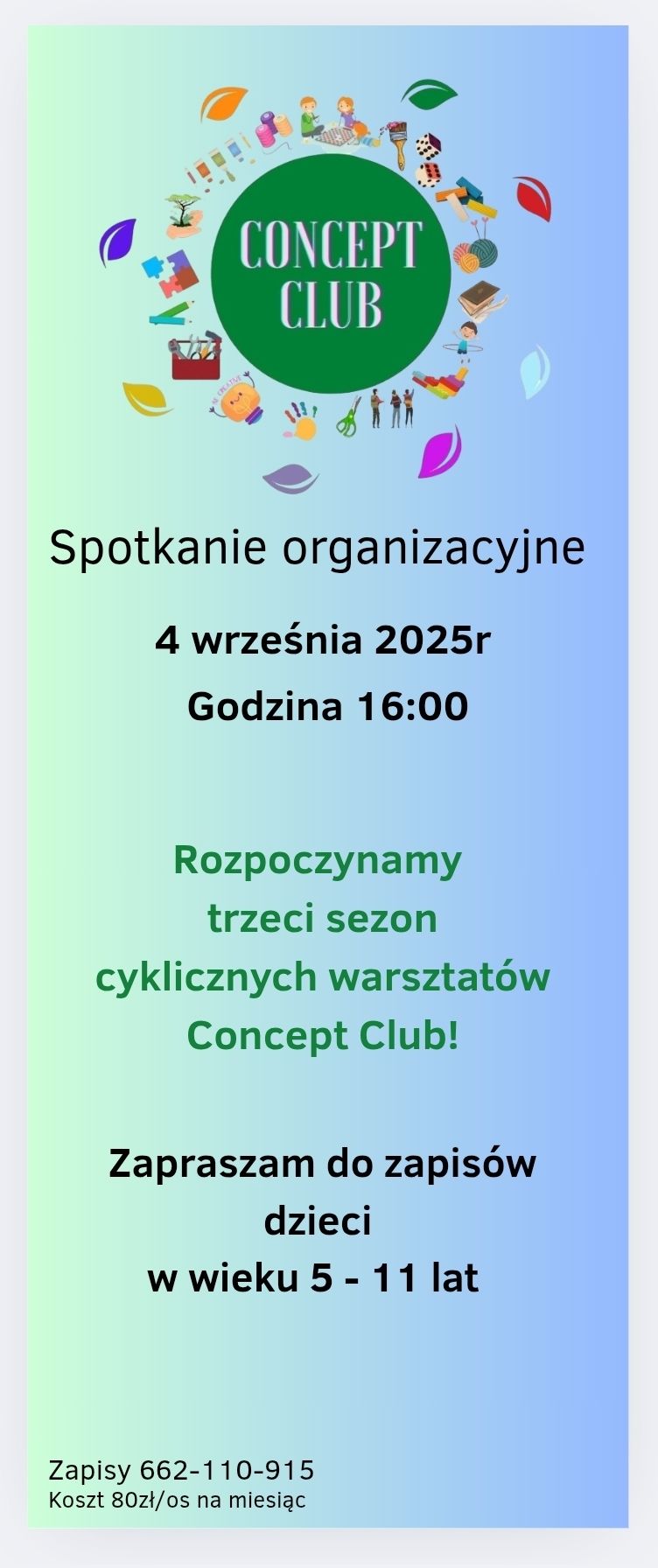 Już po raz trzeci zapraszamy na stałe warsztaty Concept Club 2025/2026r, które od września staną się miejscem pełnym kolorów, uśmiechu i wyzwań.