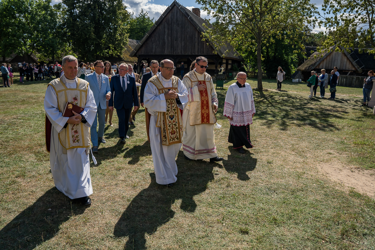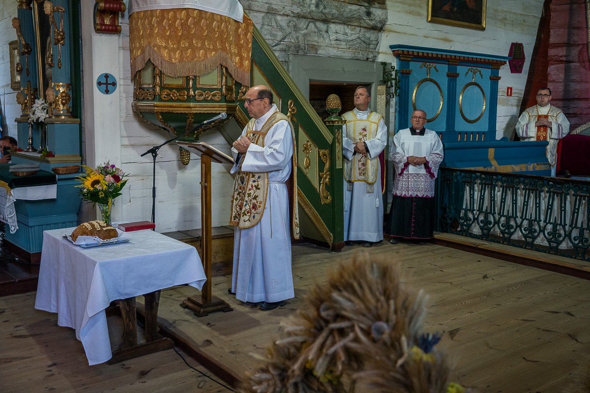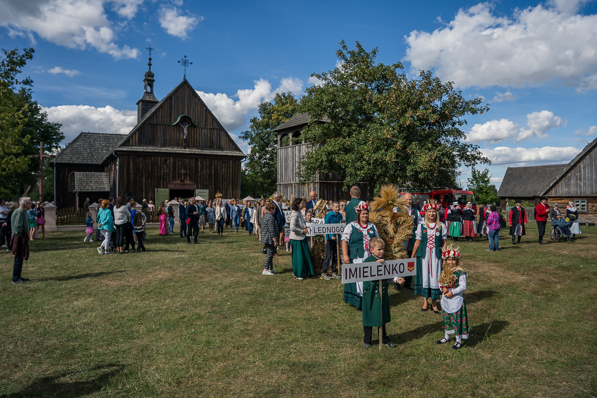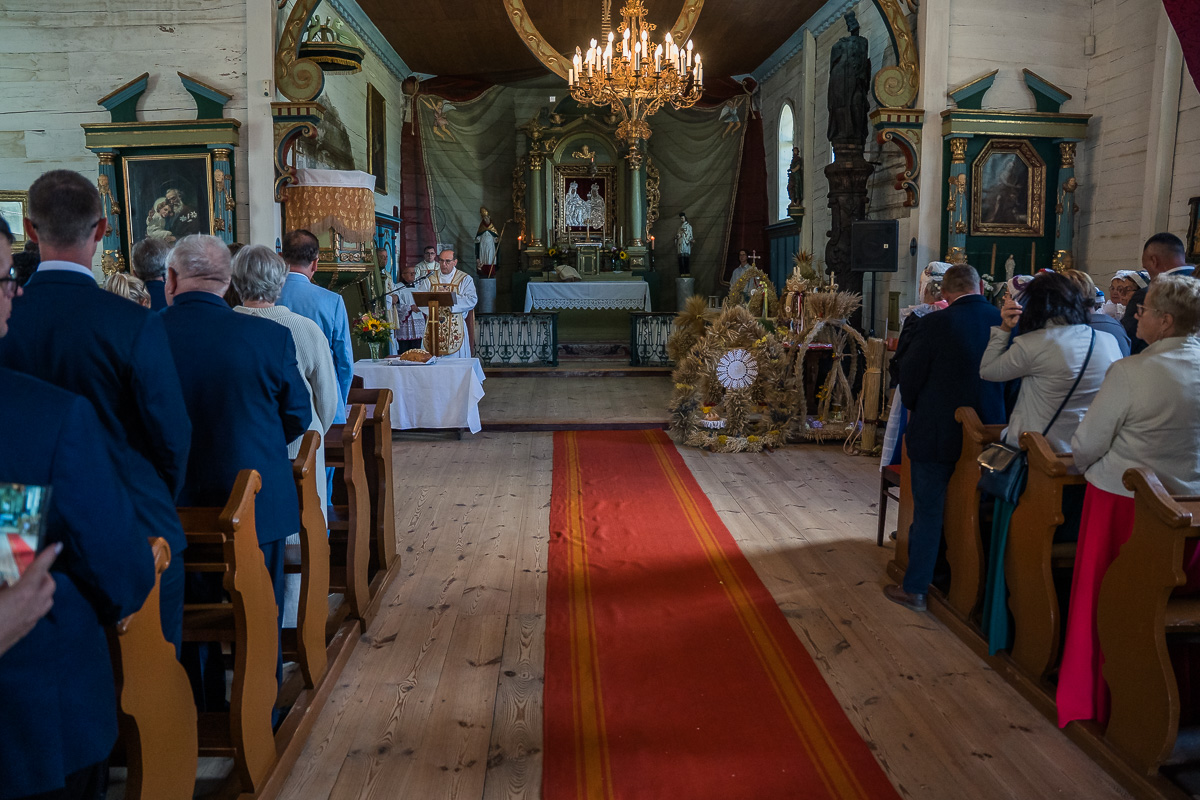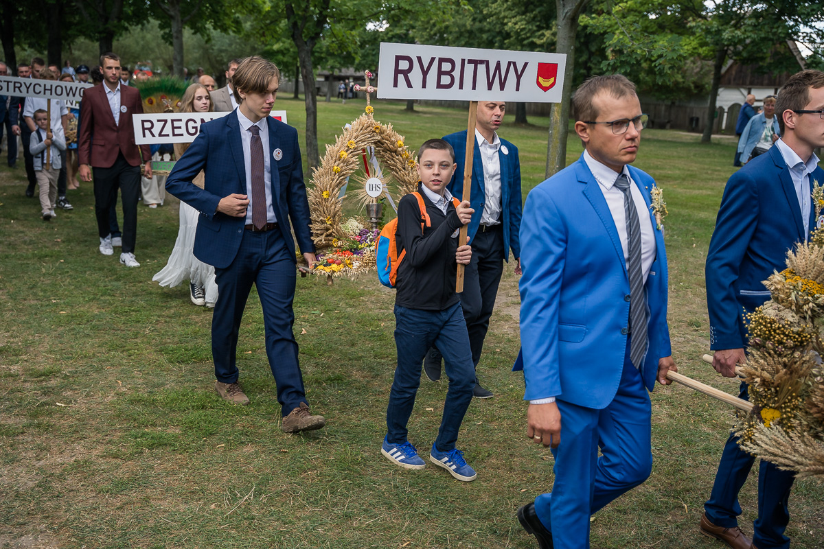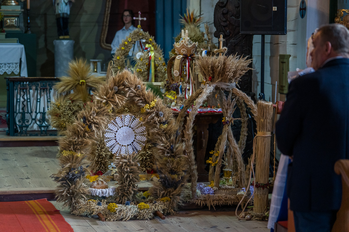 Uroczystość rozpoczęła się o godzinie 14:00 Mszą Świętą w zabytkowym kościele z Wartkowic na terenie Wielkopolskiego Parku Etnograficznego w Dziekanowicach. Liturgię sprawował ksiądz prof. dr hab. Tomasz Rakoczy wraz z proboszczami parafii z terenu gminy: ks. Sławomirem Kozikiem, ks. Andrzejem Szyndlerem oraz ks. Karolem Świderskim. Oprawę muzyczną zapewnili Adrianna i Sebastian Patrzek, a całości dopełniły występy Orkiestry Dętej ze Środy Wielkopolskiej oraz Zespołu Folklorystycznego „Obertas” z Gniezna. Mszę uświetniły również piękne wieńce dożynkowe przygotowane przez wszystkie sołectwa gminy Łubowo.