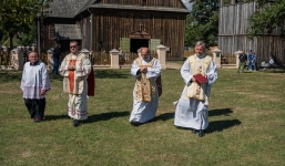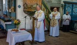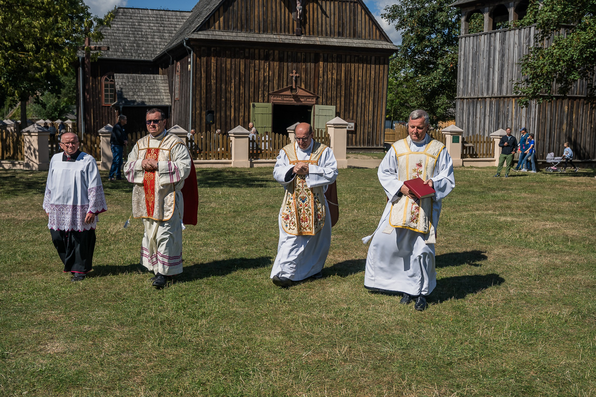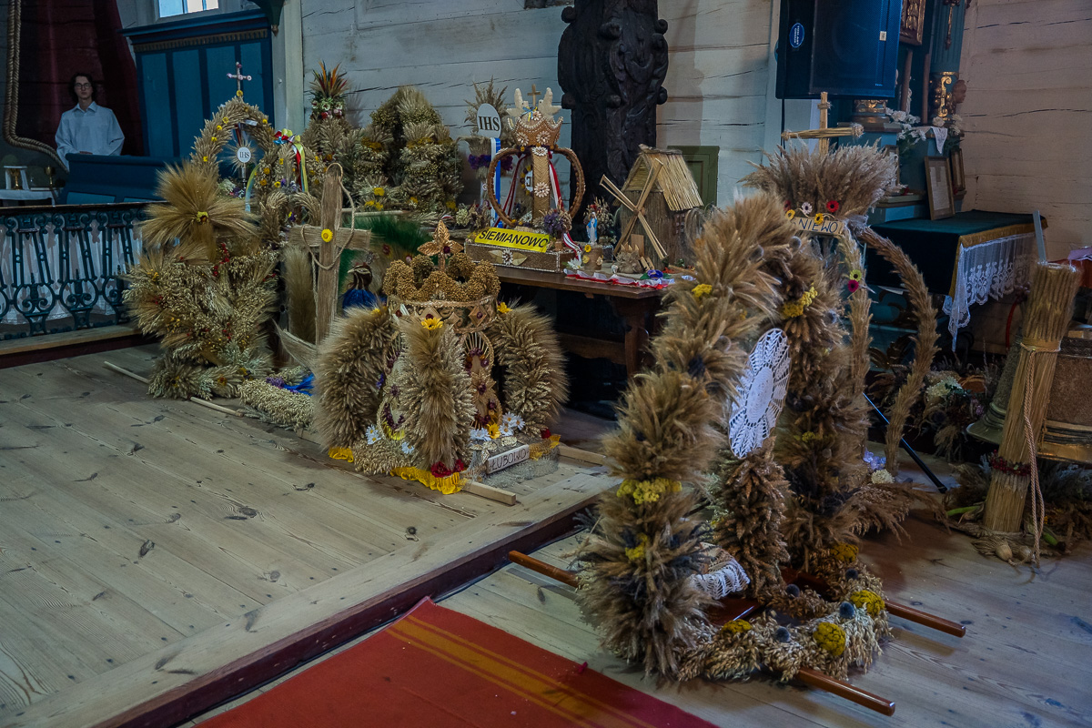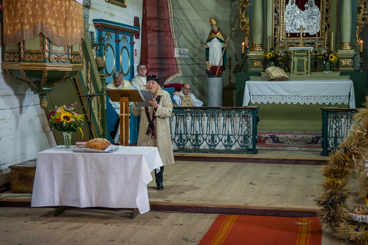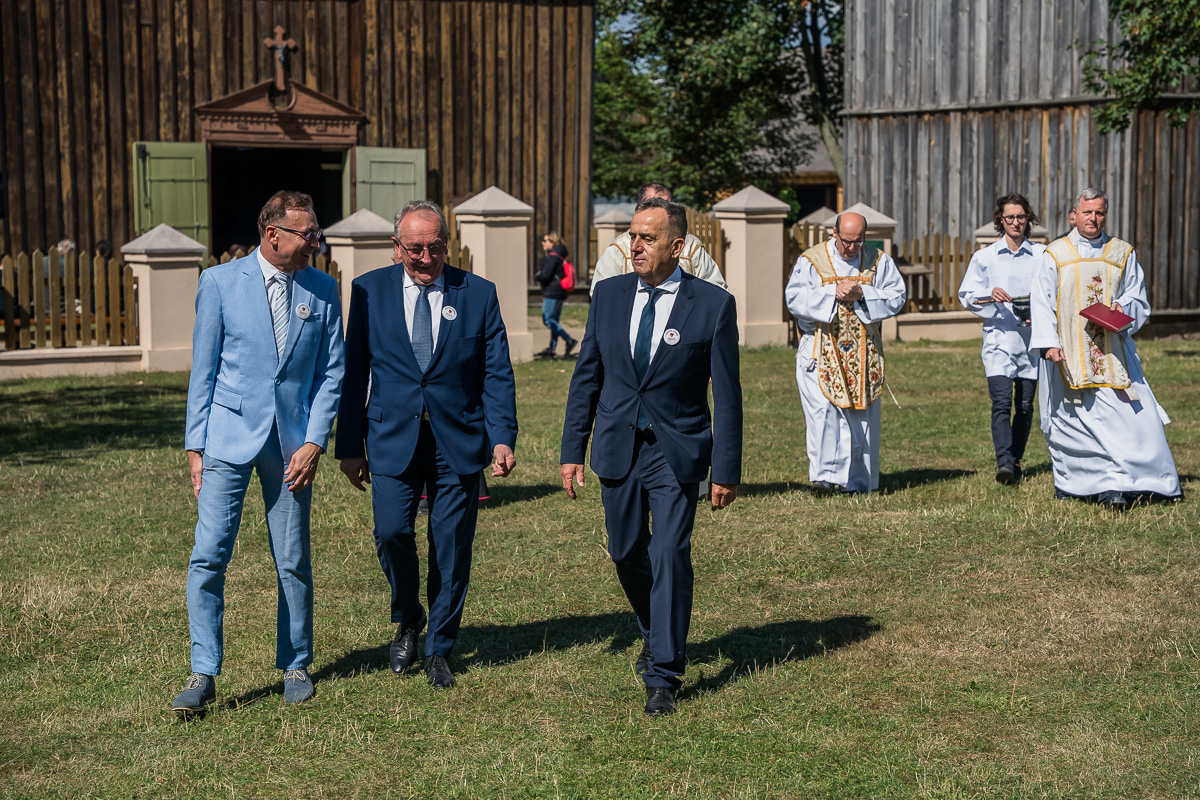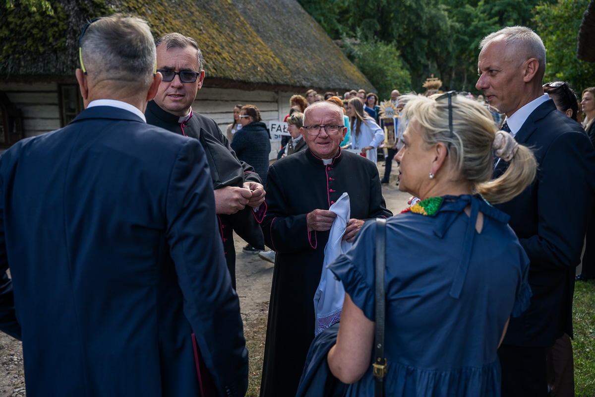Uroczystość rozpoczęła się o godzinie 14:00 Mszą Świętą w zabytkowym kościele z Wartkowic na terenie Wielkopolskiego Parku Etnograficznego w Dziekanowicach. Liturgię sprawował ksiądz prof. dr hab. Tomasz Rakoczy wraz z proboszczami parafii z terenu gminy: ks. Sławomirem Kozikiem, ks. Andrzejem Szyndlerem oraz ks. Karolem Świderskim. Oprawę muzyczną zapewnili Adrianna i Sebastian Patrzek, a całości dopełniły występy Orkiestry Dętej ze Środy Wielkopolskiej oraz Zespołu Folklorystycznego „Obertas” z Gniezna. Mszę uświetniły również piękne wieńce dożynkowe przygotowane przez wszystkie sołectwa gminy Łubowo.