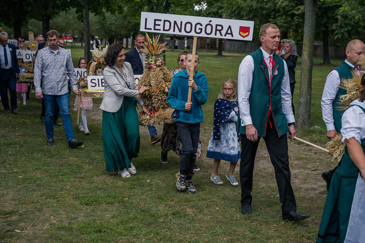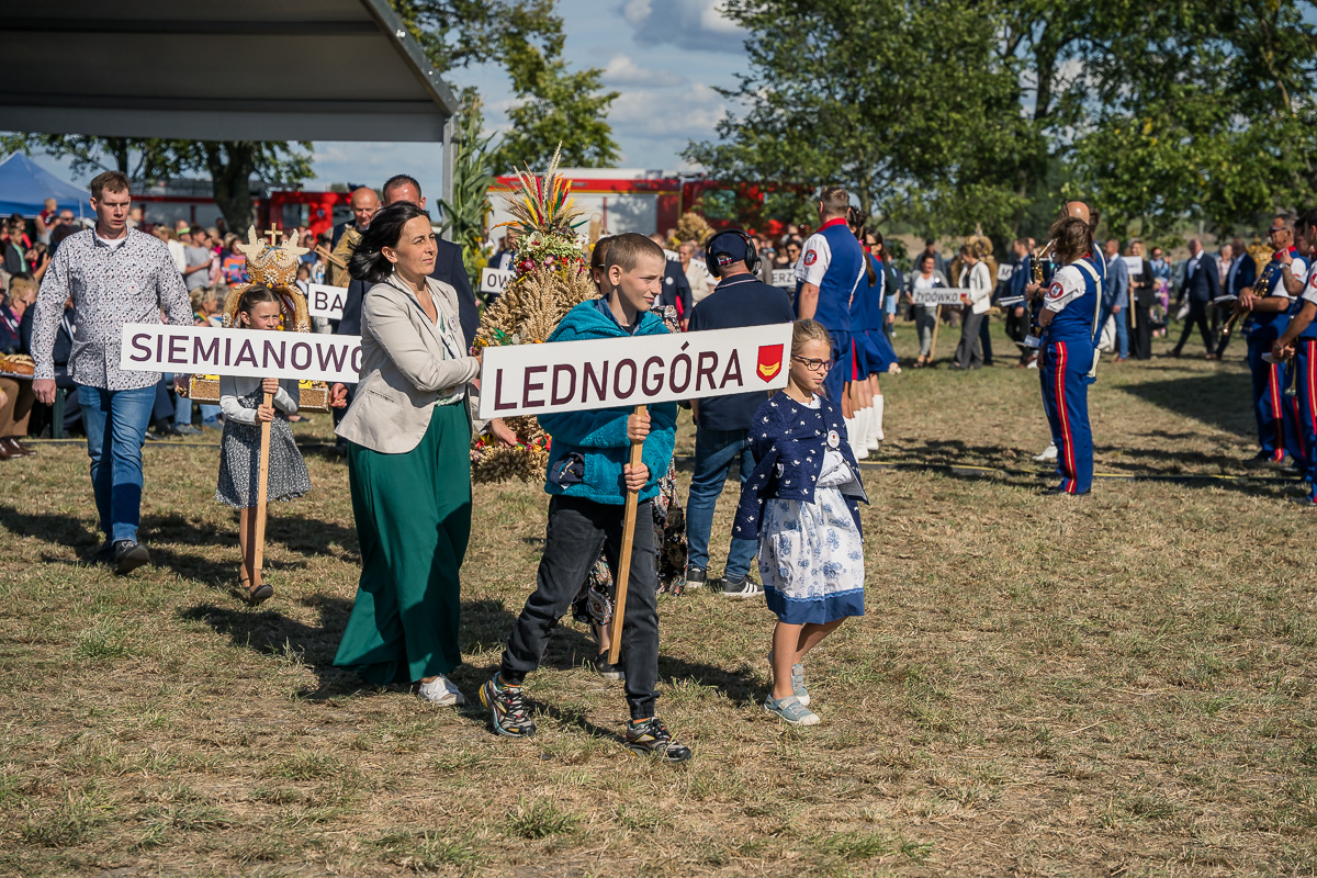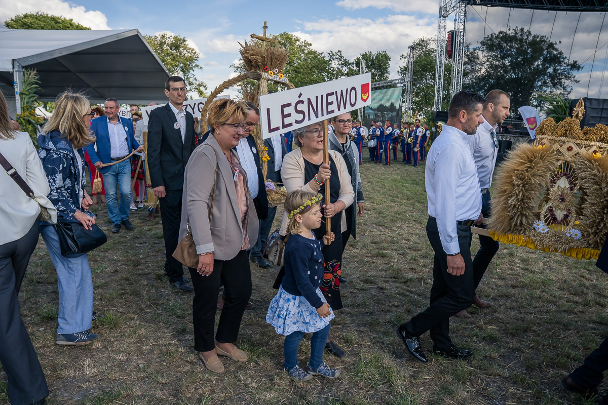 Po zakończeniu nabożeństwa barwny korowód dożynkowy prowadzony przez druhów OSP Łubowo, wraz z Wójtem Gminy, zaproszonymi gośćmi, radnymi, sołtysami i delegacjami wieńcowymi przeszedł na plac dożynkowy przy siedzibie Muzeum Pierwszych Piastów na Lednicy. Po złożeniu wieńców dożynkowych odbył się koncert Orkiestry Dętej ze Środy Wielkopolskiej, a następnie rozpoczęła się część oficjalna. Dożynki otworzył przemówieniem Wójt Gminy Łubowo Andrzej Łozowski, po którym głos zabrali Wicemarszałek Województwa Wielkopolskiego Wojciech Jankowiak, Przewodniczący Rady Powiatu Gnieźnieńskiego Dariusz Pilak, Członek Zarządu Powiatu Gnieźnieńskiego Ewa Barłoga-Purol, która odczytała list od Starosty Gnieźnieńskiego Tomasza Budasza, oraz przedstawicielka Agencji Restrukturyzacji i Modernizacji Rolnictwa Laura Wachowska.