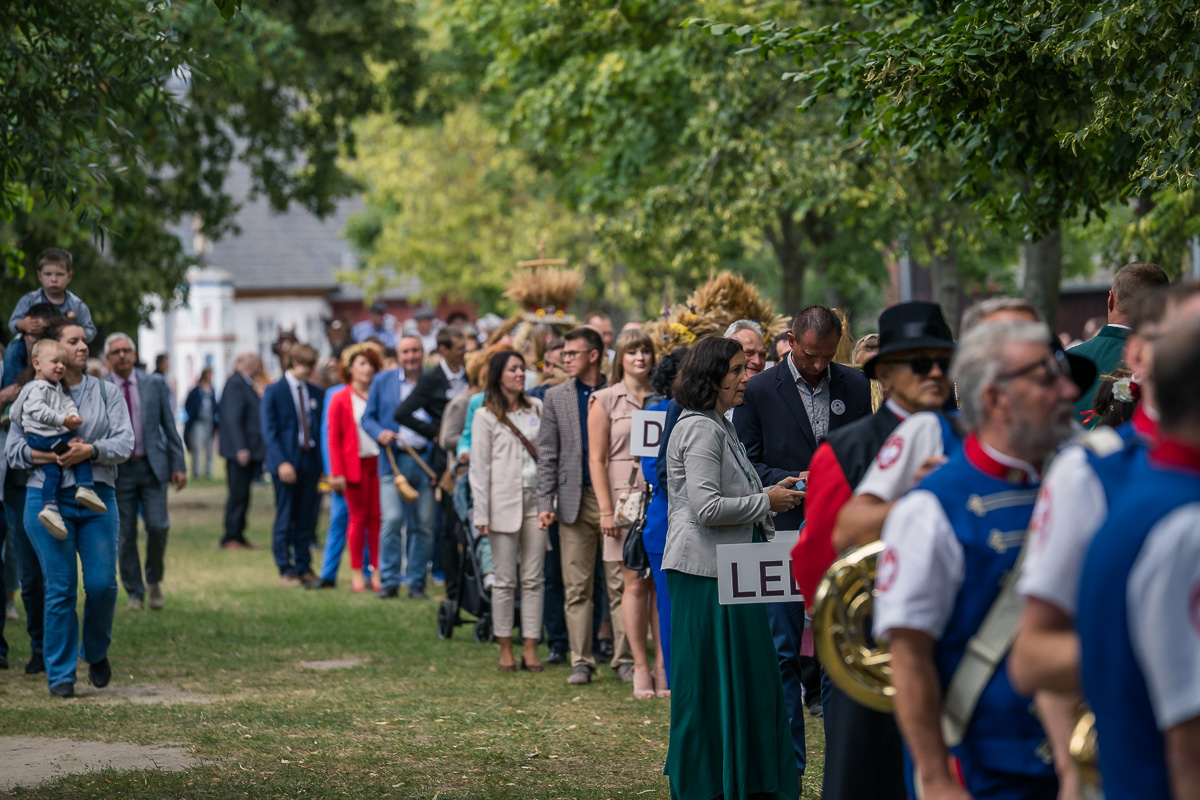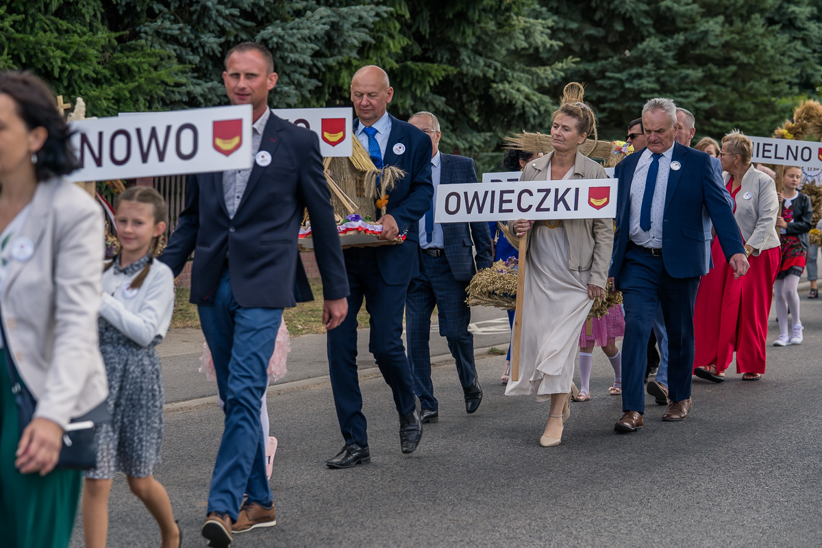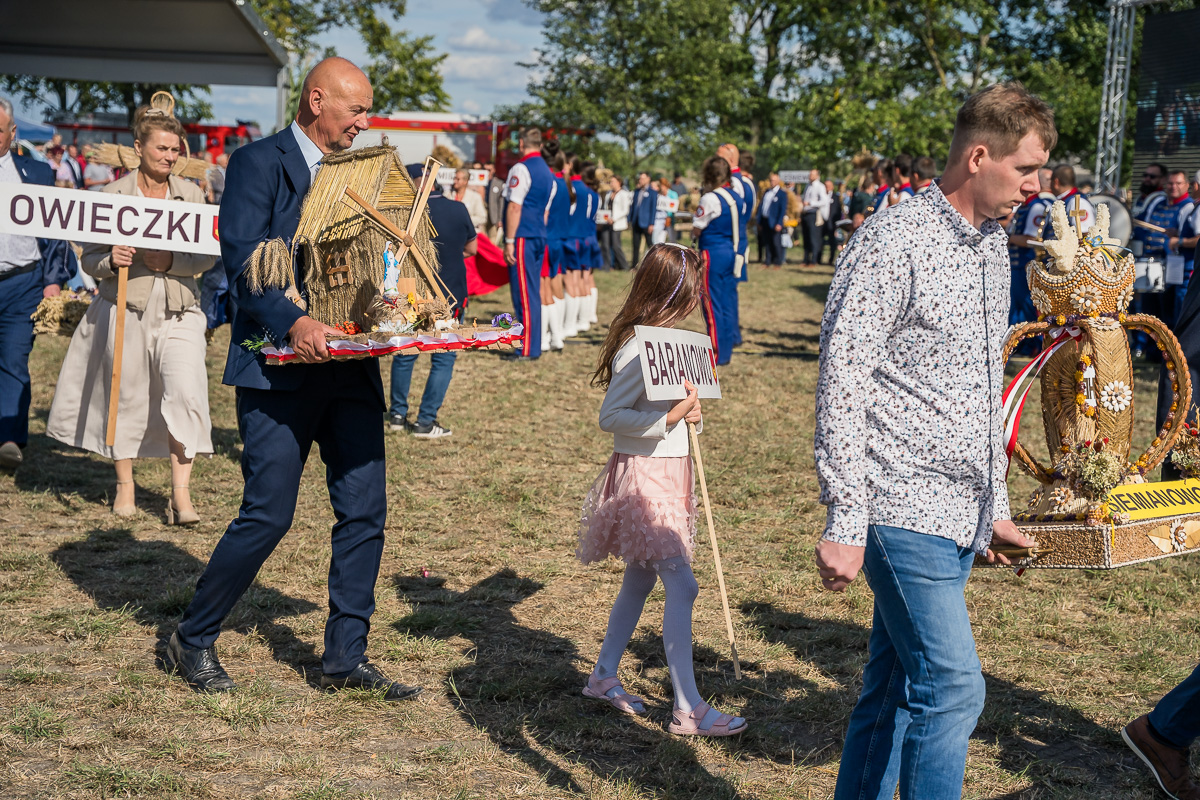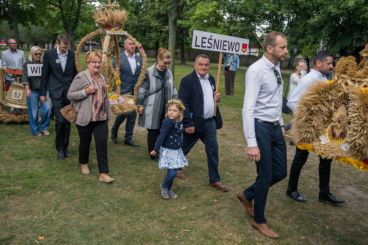 Po zakończeniu nabożeństwa barwny korowód dożynkowy prowadzony przez druhów OSP Łubowo, wraz z Wójtem Gminy, zaproszonymi gośćmi, radnymi, sołtysami i delegacjami wieńcowymi przeszedł na plac dożynkowy przy siedzibie Muzeum Pierwszych Piastów na Lednicy. Po złożeniu wieńców dożynkowych odbył się koncert Orkiestry Dętej ze Środy Wielkopolskiej, a następnie rozpoczęła się część oficjalna. Dożynki otworzył przemówieniem Wójt Gminy Łubowo Andrzej Łozowski, po którym głos zabrali Wicemarszałek Województwa Wielkopolskiego Wojciech Jankowiak, Przewodniczący Rady Powiatu Gnieźnieńskiego Dariusz Pilak, Członek Zarządu Powiatu Gnieźnieńskiego Ewa Barłoga-Purol, która odczytała list od Starosty Gnieźnieńskiego Tomasza Budasza, oraz przedstawicielka Agencji Restrukturyzacji i Modernizacji Rolnictwa Laura Wachowska.