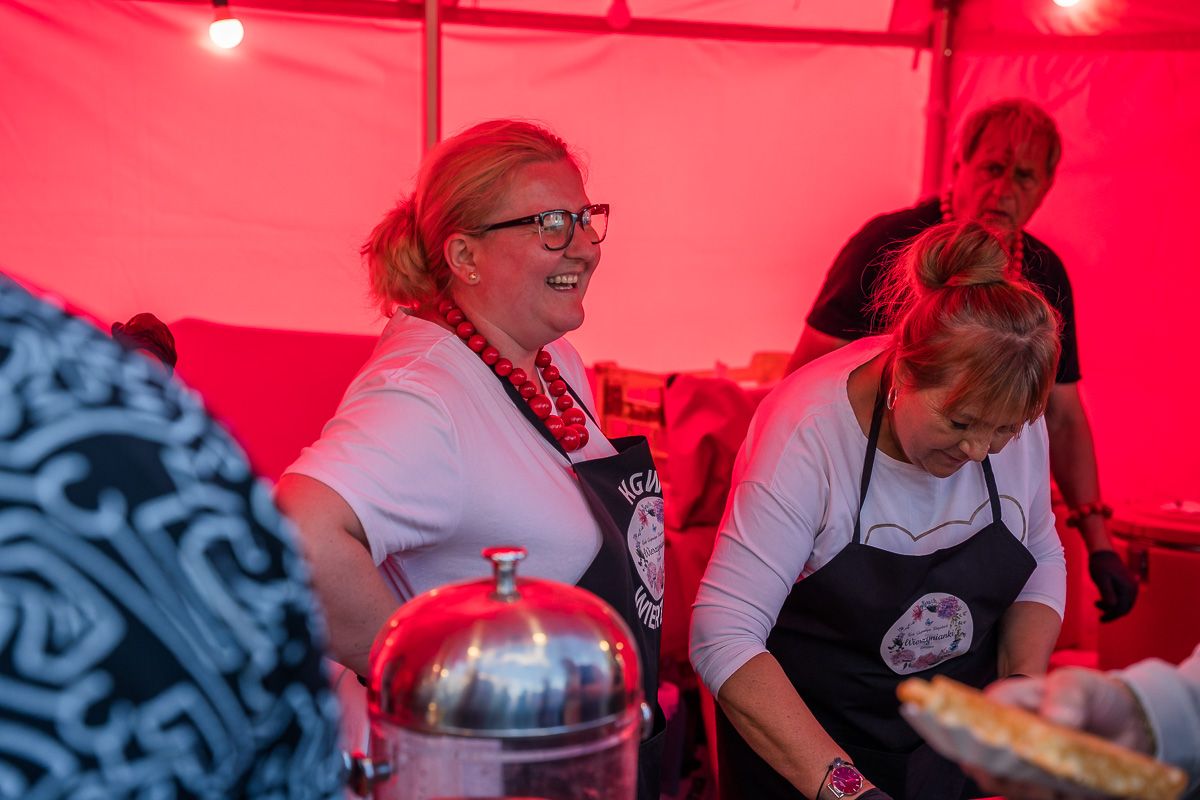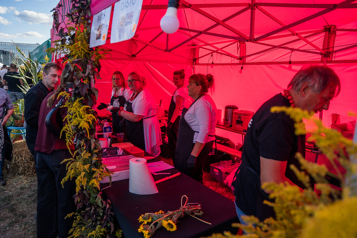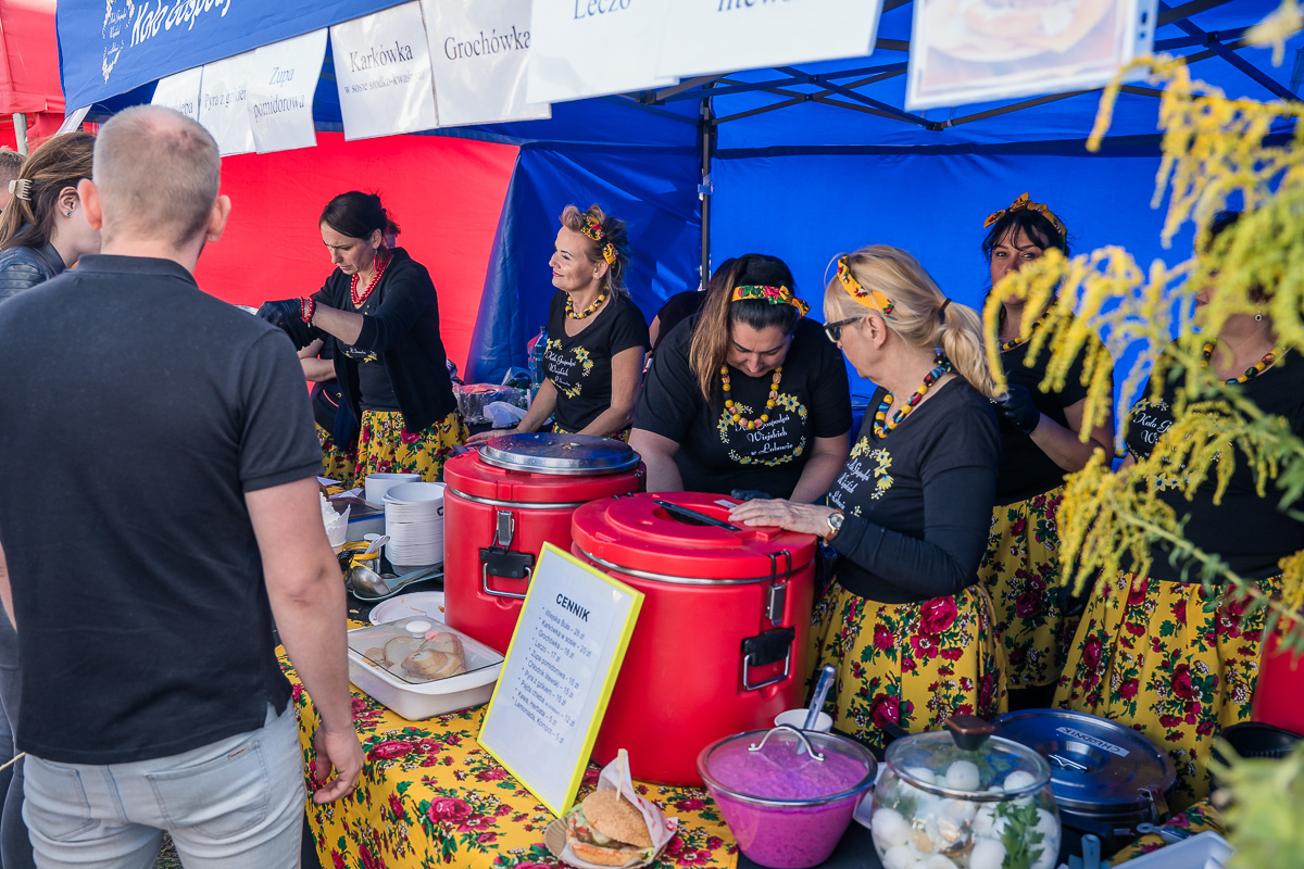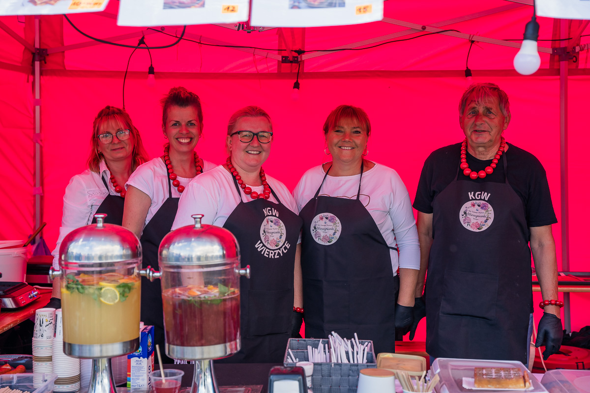 Na uczestników czekało także bogate zaplecze gastronomiczne przygotowane przez Koła Gospodyń Wiejskich z Imielenka, Fałkowa, Łubowa, Wierzyc i na Lednicy. Goście mogli skosztować regionalnych potraw, deserów i wypieków, a także lodów, waty cukrowej i popularnych zakręconych ziemniaków. Dużym zainteresowaniem cieszyły się stoiska wystawców oferujących rękodzieło, lokalne sery, tarty i wina.