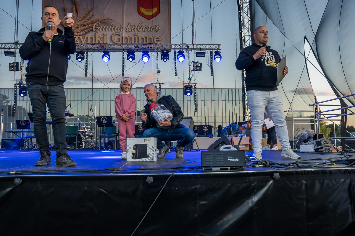 W przerwach między koncertami odbywało się losowanie „Szczęśliwego Gościa Dożynkowego”. Wśród uczestników rozlosowano wiele atrakcyjnych nagród, w tym rower z wyposażeniem – nagrodę Wójta Gminy Łubowo, telewizor 55 cali ufundowany przez starościnę i starostę dożynek, rower podarowany przez Centrum Ogrodnicze Kora w Żelazkowie, deskę SUP, ekspres do kawy, saturator SodaStream, słuchawki i głośniki JBL, powerbanki od firmy Henbud Robert Kaczor oraz wiele innych cennych upominków od sponsorów.