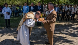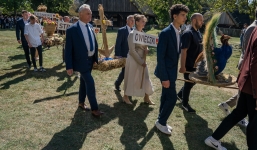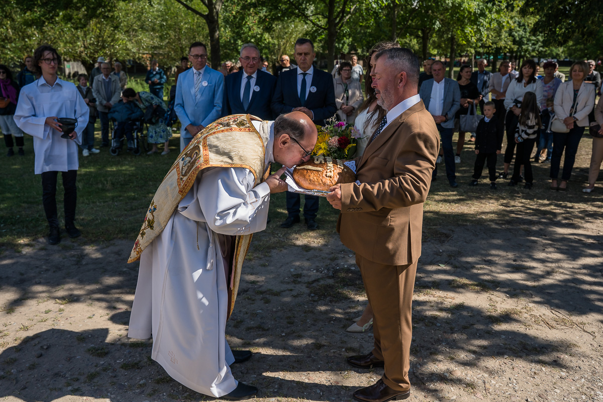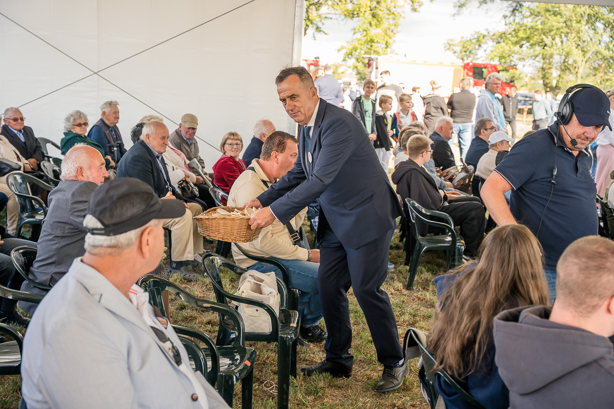 Następnie odbył się obrzęd chleba przygotowany przez Zespół Folklorystyczny „Obertas” z Gniezna. Starostowie dożynek przekazali na ręce Wójta Gminy bochen chleba, który Wójt symbolicznie obiecał dzielić sprawiedliwie między wszystkich mieszkańców.