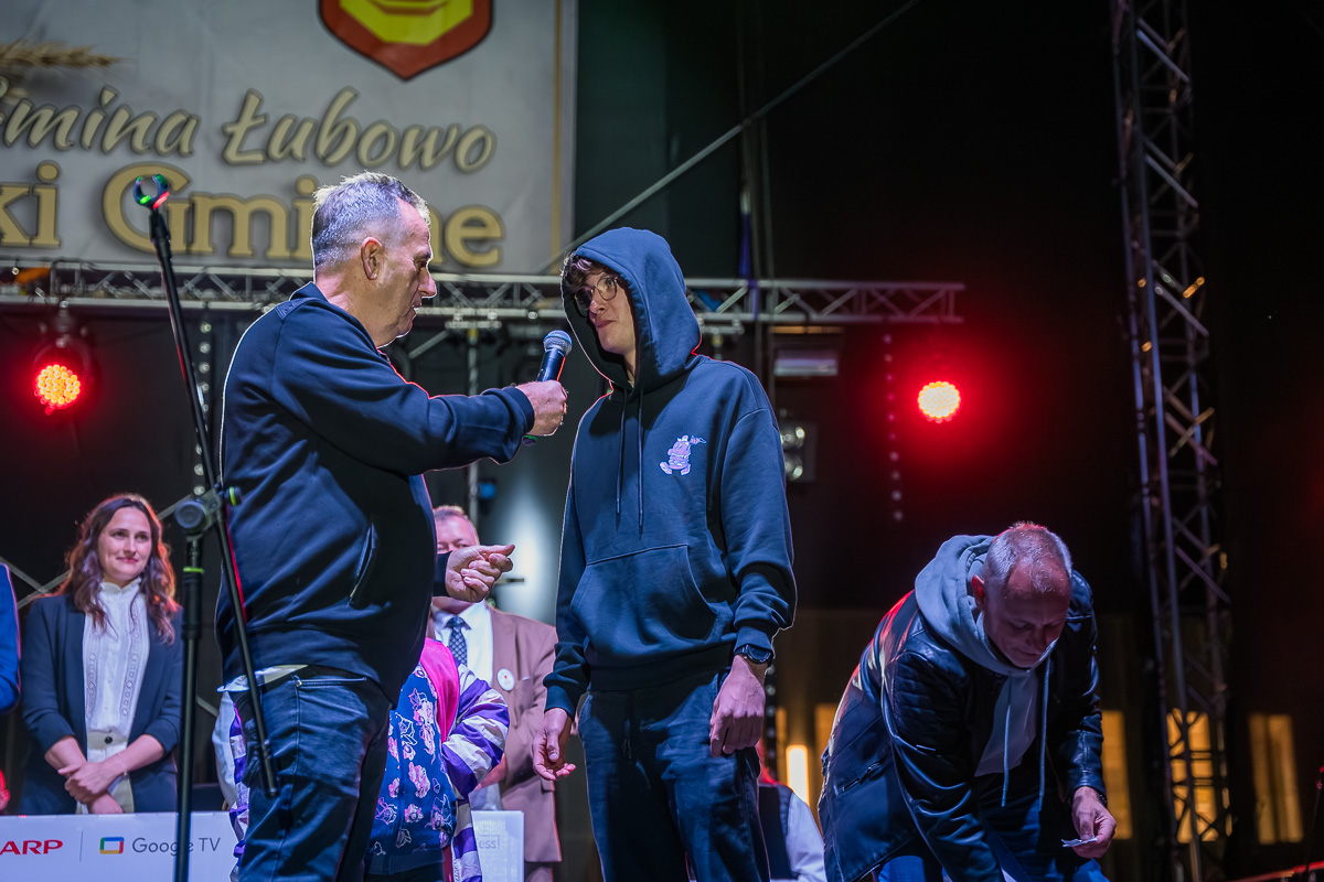 Po części oficjalnej nadszedł czas na program artystyczny, który rozpoczął się występem Zosi Karbowiak. Następnie Wójt Gminy Łubowo wraz z radnymi wręczyli nagrody w konkursie na najpiękniejsze zagospodarowanie posesji. Kolejnymi punktami programu były koncert zespołu Blue Wave Band oraz niezwykle energetyczny występ Thomasa Grotto z Orkiestrą Wind Cameral Orchestra, który zachwycił publiczność i sprawił, że tegoroczne dożynki miały naprawdę niesamowitą oprawę muzyczną.
