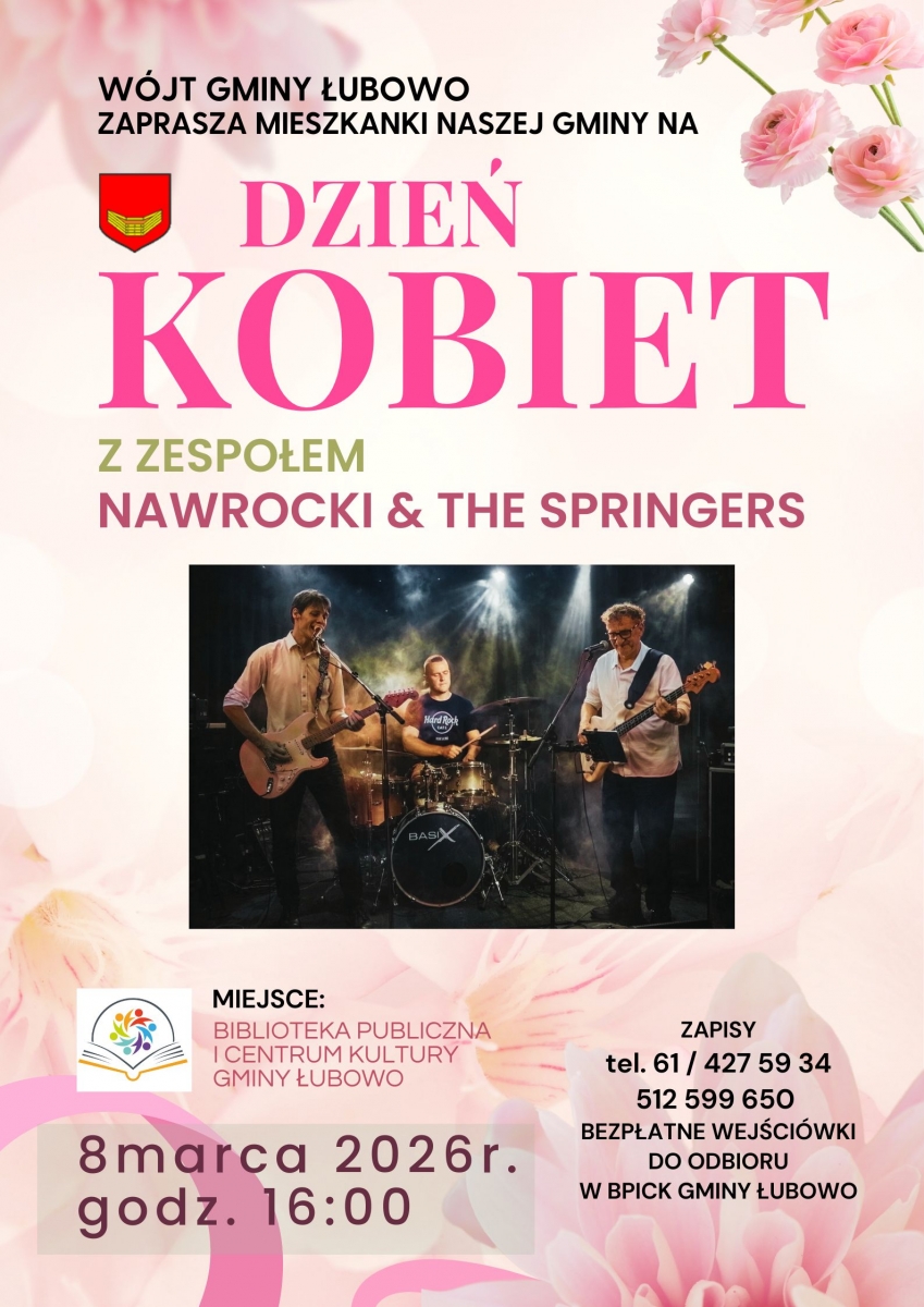 Wójt Gminy Łubowo serdecznie zaprasza Was na wspólne świętowanie Dnia Kobiet już 8 marca o godz. 16:00 w BPiCK.