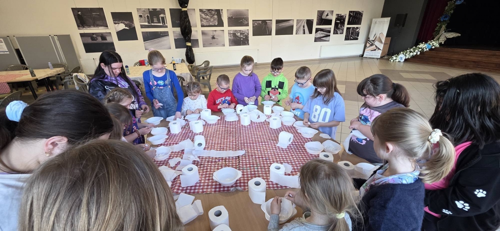 Dzisiejsze warsztaty, skoncentrowane na tworzeniu obrazków z masy papierowej, były pełne twórczej zabawy i nauki.