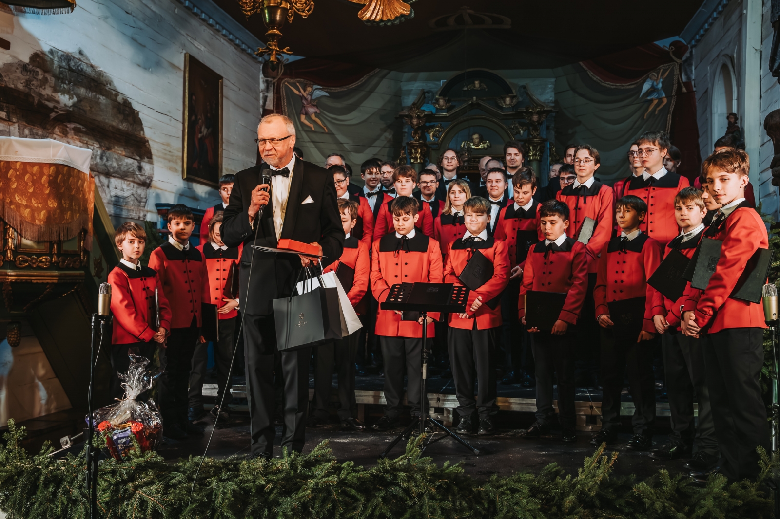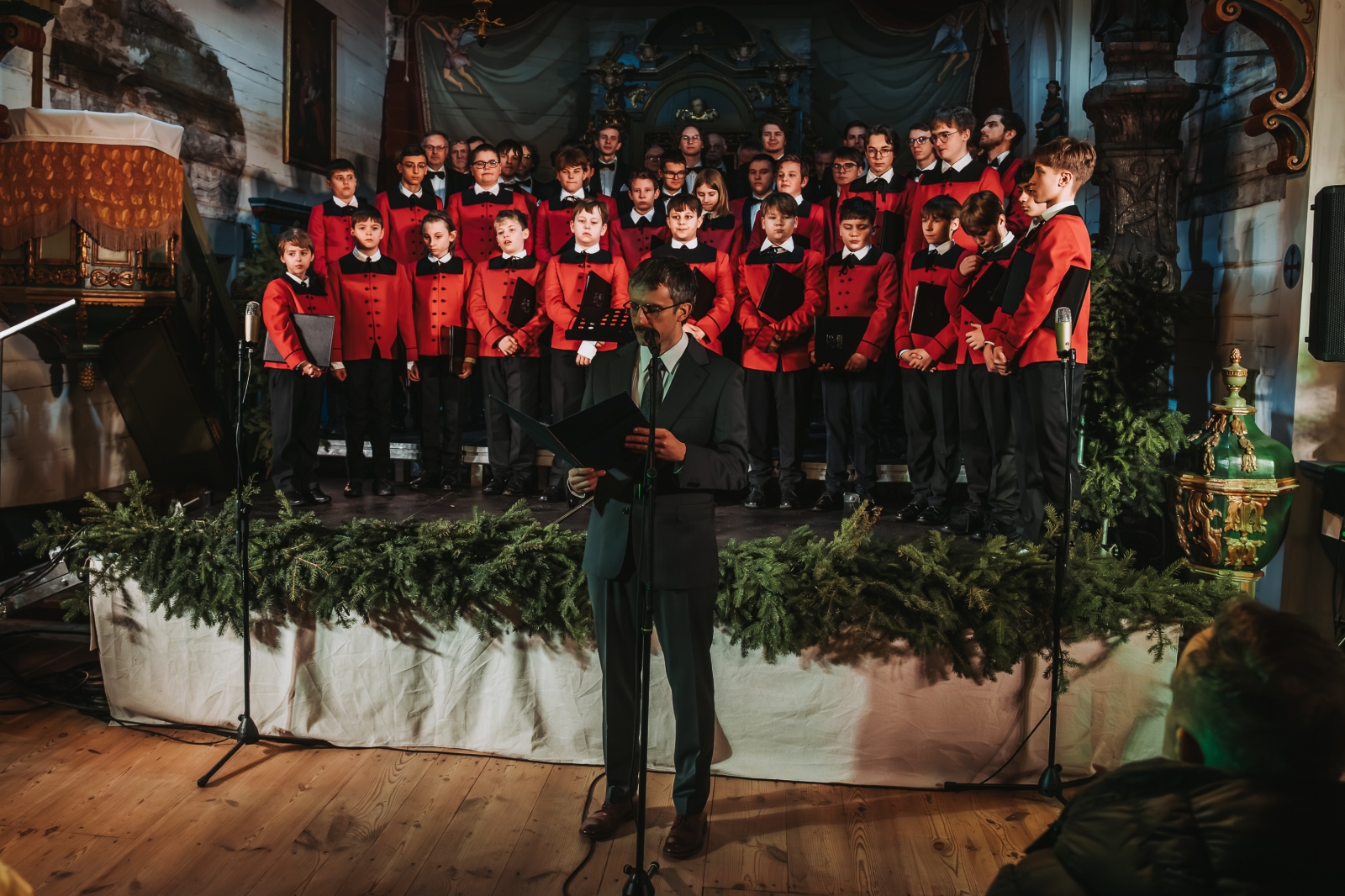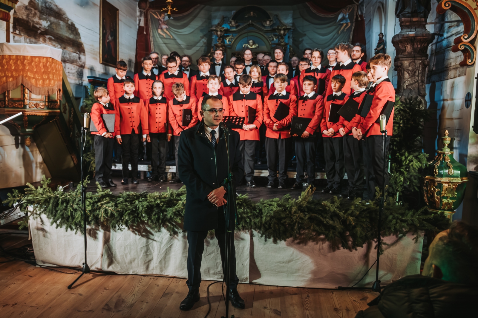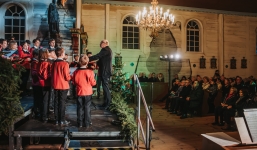 Przed licznie zgromadzoną publicznością wystąpił Chór Poznańskie Słowiki – Chór Chłopięcy i Męski Filharmonii Poznańskiej, legenda polskiej chóralistyki oraz jedna z najważniejszych muzycznych wizytówek Poznania i Polski. Zespół został założony w 1939 roku przez Stefana Stuligrosza i przez dziesięciolecia wyznaczał najwyższe standardy artystyczne i duchowe w polskiej kulturze muzycznej. Chór koncertował na najważniejszych estradach świata, występował dla głów państw oraz śpiewał dla papieża Jana Pawła II, prezentując repertuar od muzyki średniowiecznej po utwory współczesne. Obecnie, pod dyrekcją Macieja Wielocha, Poznańskie Słowiki z powodzeniem kontynuują tę wyjątkową tradycję, zachwycając kolejne pokolenia słuchaczy.