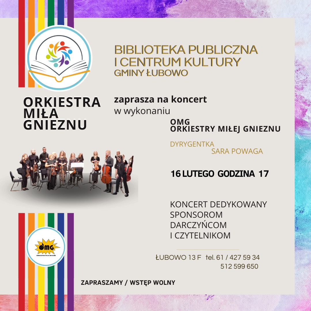 Zapraszamy na koncert OMG Orkiestra Miła Gnieznu. Będzie to również dzień podziękowań naszym najlepszym SPONSOROM, DARCZYŃCOM i CZYTELNIKOM. Zapraszamy BPICK Gminy Łubowo.