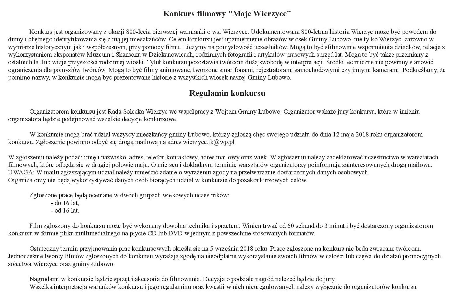 Zaproszenie mieszkańców gminy Łubowo do udziału w konkursie na film o swojej wiosce