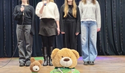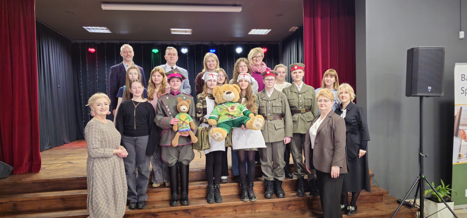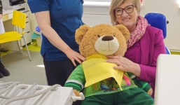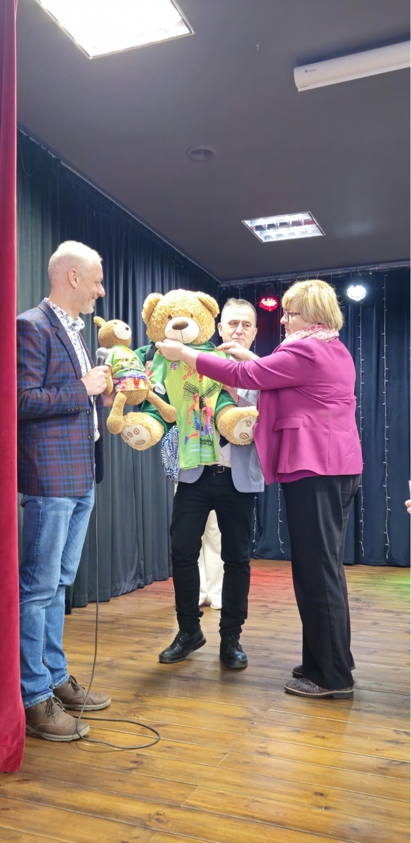 Na Misia czekała miła niespodzianka – koszulka biegu Łubowo odDYCHA, którą symbolicznie przekazał mu nasz biegowy Misiek. Podczas spotkania wysłuchaliśmy także występu uczennic ze Szkoły Podstawowej w Fałkowie, a następnie Miś Lesio odwiedził bibliotekę i wspólnie przeszliśmy do budynku Szkoły Podstawowej w Łubowie. Tam miś odwiedził dzieci w salach lekcyjnych, a najmłodsi uczniowie zaprezentowali krótki występ taneczny. Następnie, pod opieką „sanitariuszek” z grupy rekonstrukcyjnej, udał się na wizytę do szkolnego stomatologa. Na szczęście, przy wsparciu naszego biegowego misia, wszystko przebiegło bardzo dobrze i w bardzo przyjaznej atmosferze.