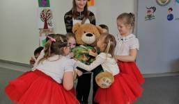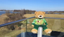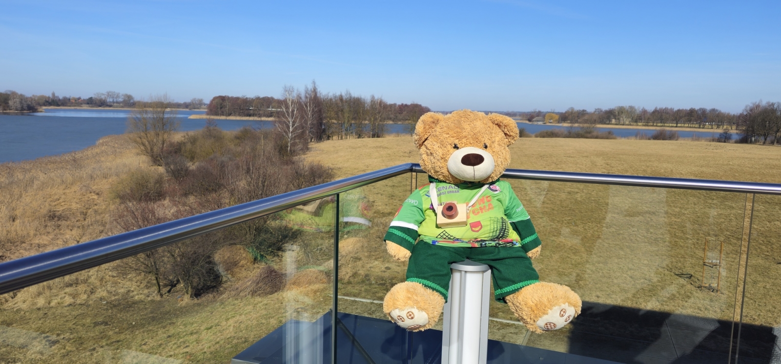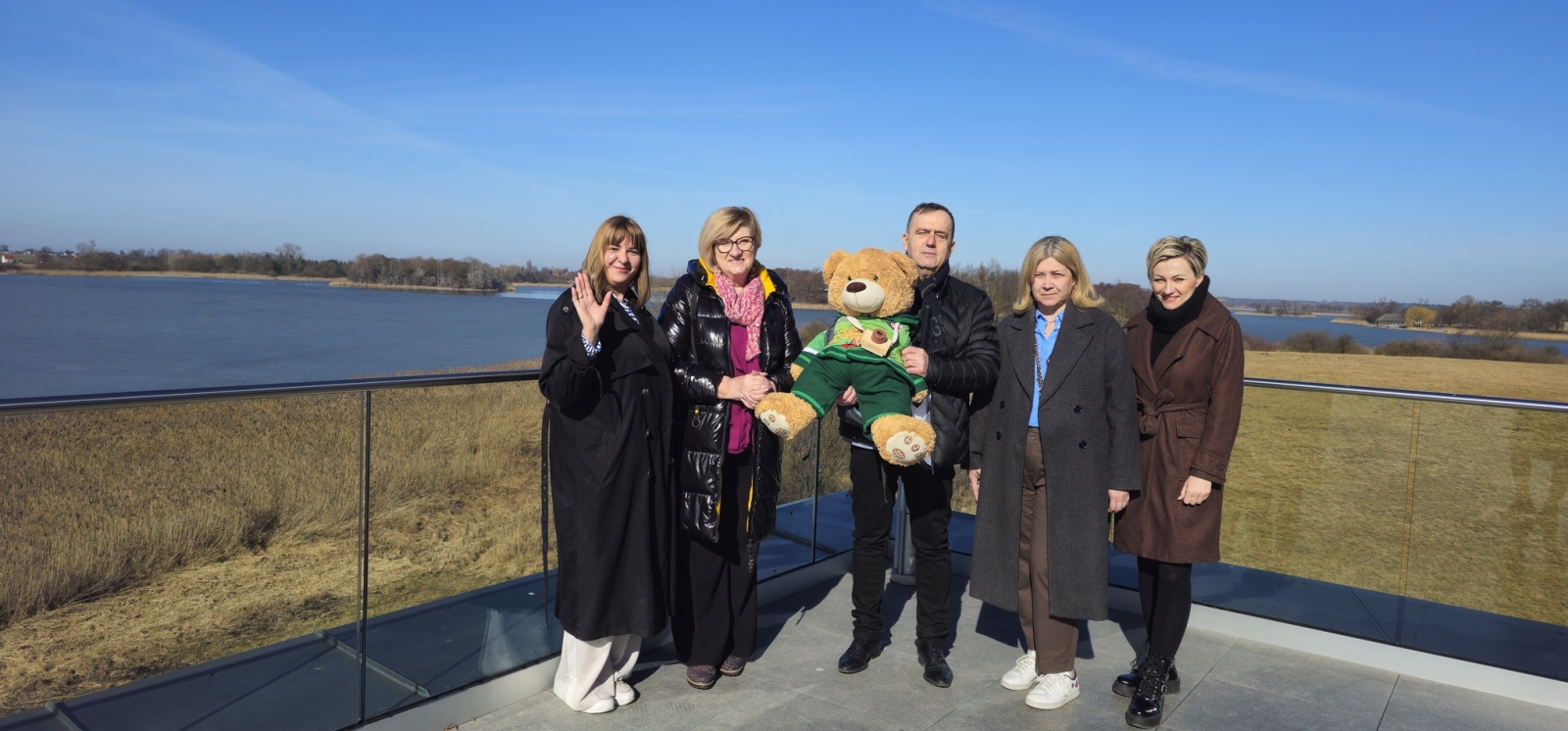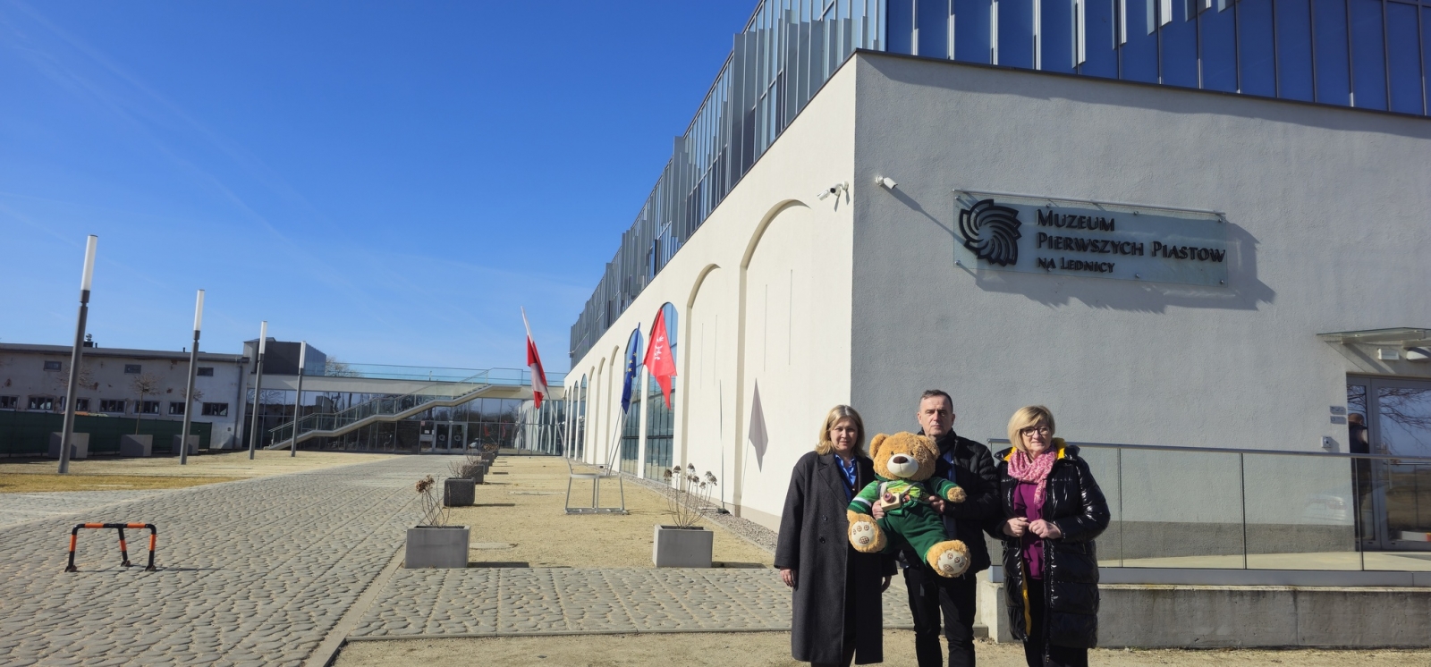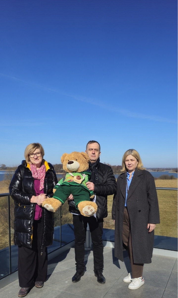 Kolejnym punktem wizyty było Muzeum Pierwszych Piastów na Lednicy, gdzie gości przywitała Kierownik Działu Promocji Joanna Wieczorek. Miś Lesio mógł podziwiać piękną panoramę Jeziora Lednickiego oraz poznać historię i zabytki jednego z najważniejszych miejsc związanych z początkami państwa polskiego.