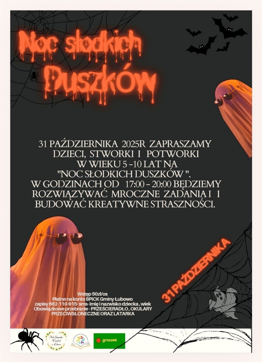 31 października zapraszamy serdecznie na Noc Słodkich Duszków, pełną niesamowitych wrażeń i dreszczyków!