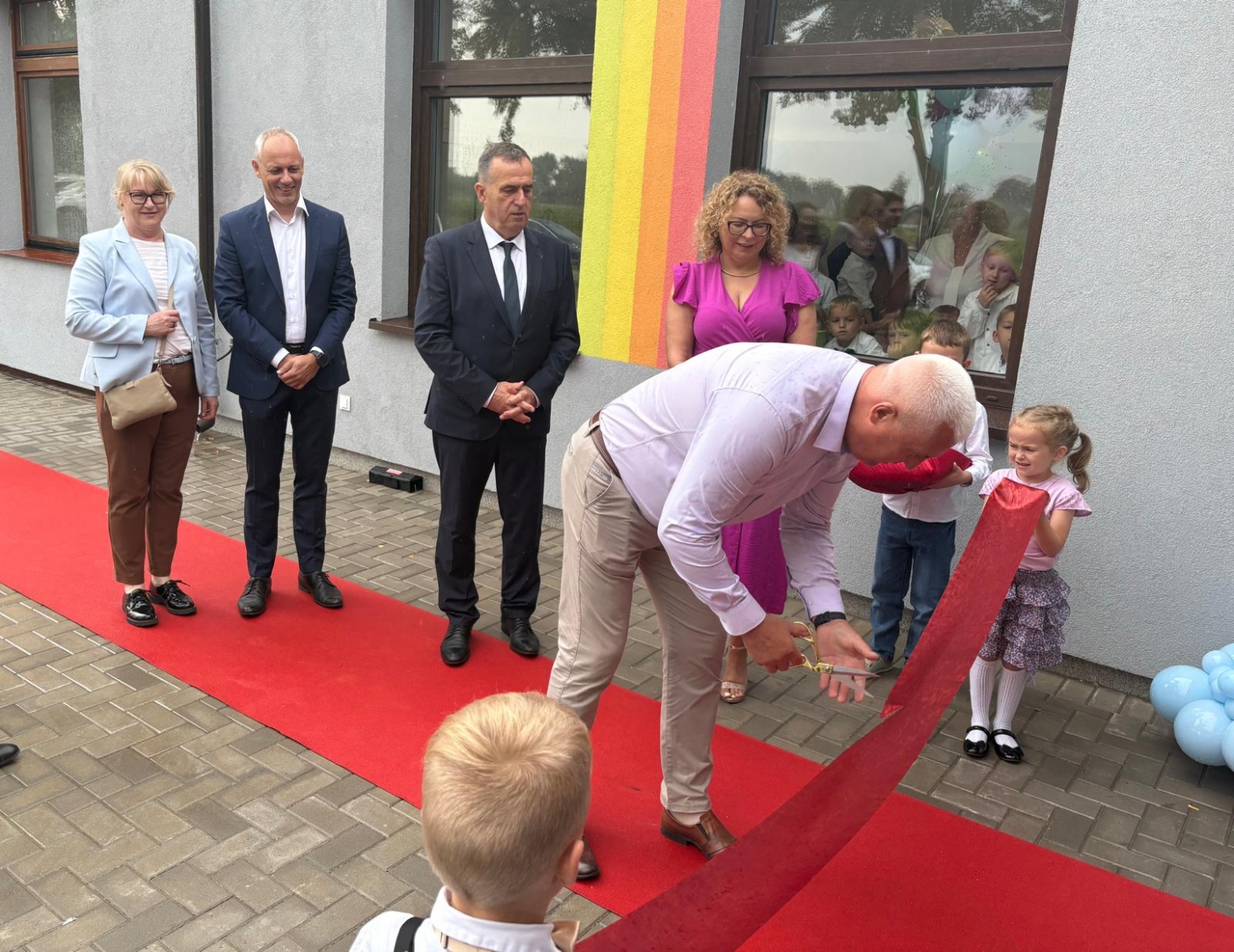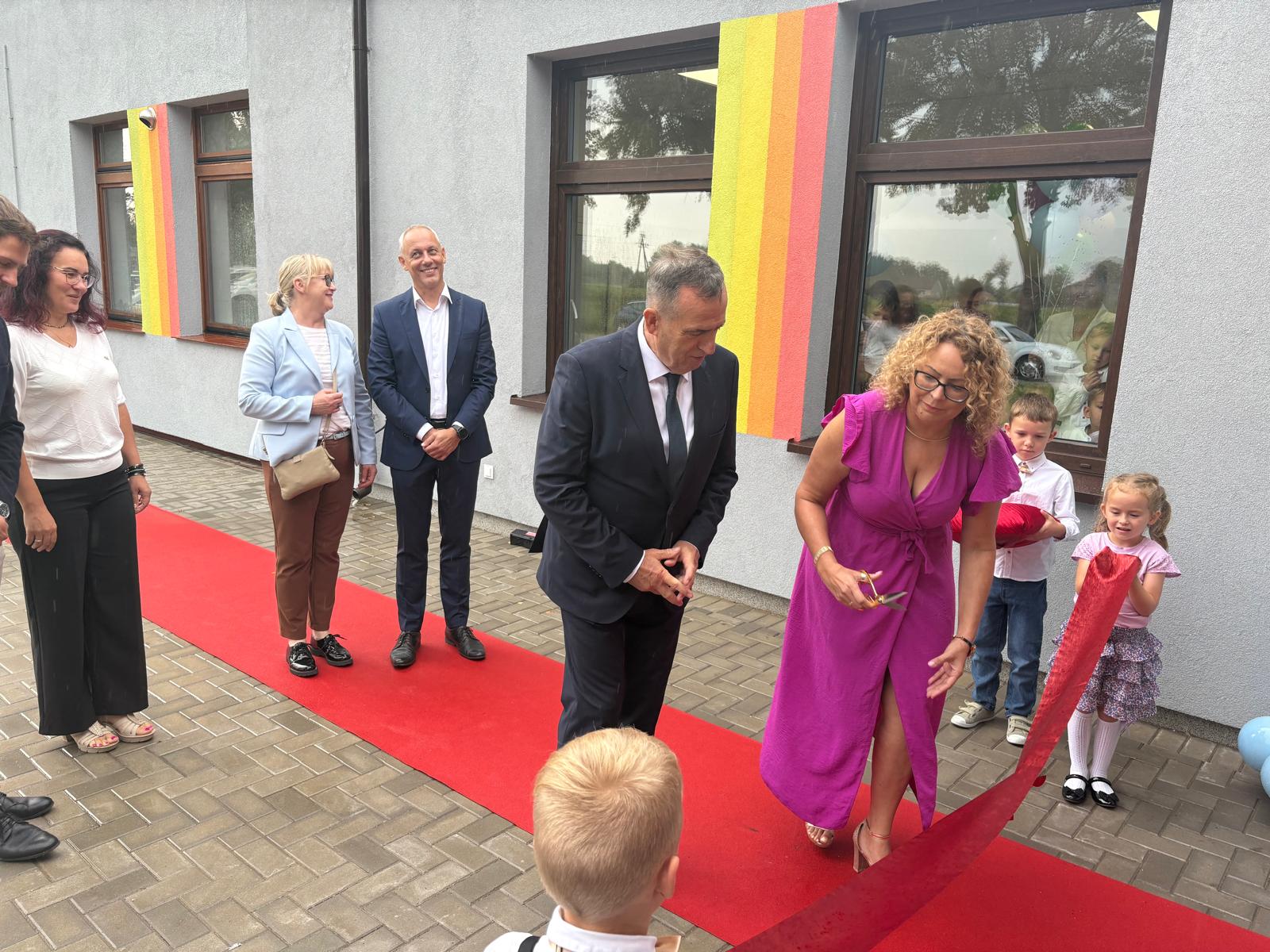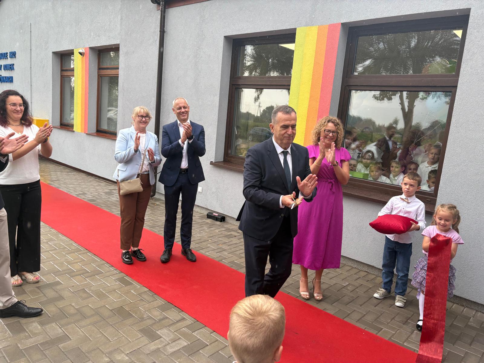 Dziś w Przedszkolu nr 2 Tęczowy Domek w Woźnikach odbyło się oficjalne otwarcie nowej części przedszkola. Inwestycję zrealizowano przy wsparciu Rządowego Funduszu Polski Ład: Program Inwestycji Strategicznych, zgodnie z promesą z 2023 r. Nr Edycja 6PGR/2023/1421/PolskiLad.