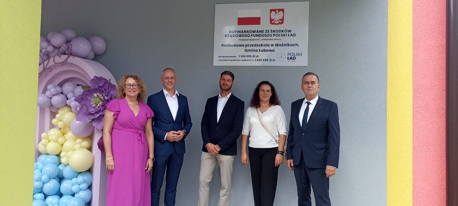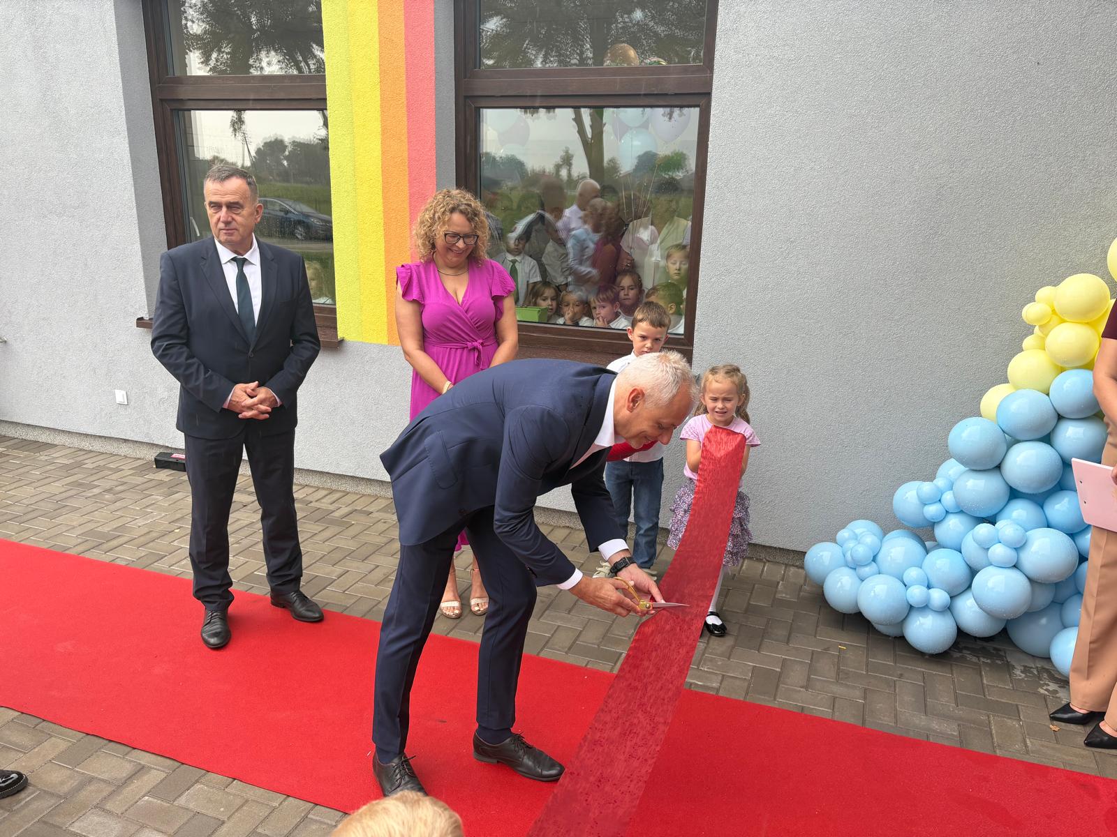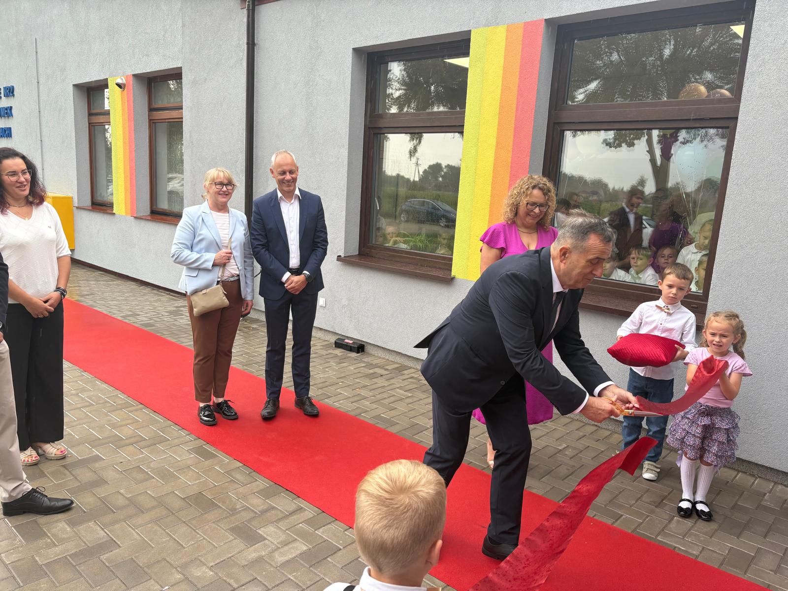 Dziś w Przedszkolu nr 2 Tęczowy Domek w Woźnikach odbyło się oficjalne otwarcie nowej części przedszkola. Inwestycję zrealizowano przy wsparciu Rządowego Funduszu Polski Ład: Program Inwestycji Strategicznych, zgodnie z promesą z 2023 r. Nr Edycja 6PGR/2023/1421/PolskiLad.