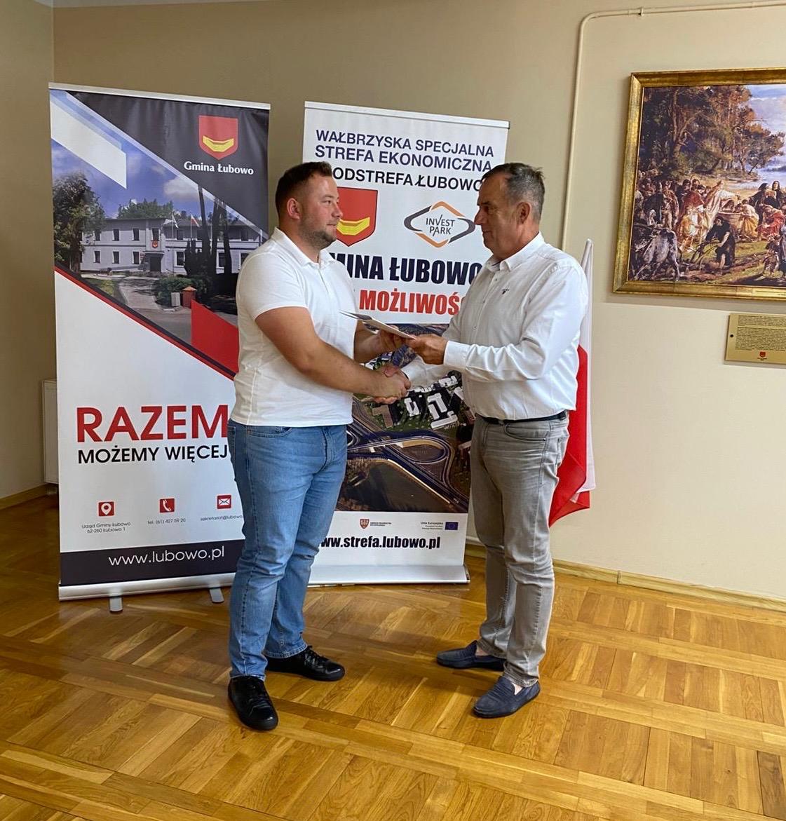 Dnia 19 sierpnia w siedzibie Urzędu Gminy w Łubowie została podpisana umowa dotycząca zadania „Budowa drogi gminnej w m. Wierzyce dz. nr 202, 229, 161/4, 204/7, 207/42 Gmina Łubowo”