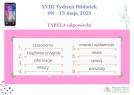 Zakończył się XVIII Tydzień Bibliotek, który przebiegał pod hasłem "Znajdziesz mnie w bibliotece". Z tej okazji Biblioteka przeprowadziła konkurs rebusowy. Zwycięzcą została Nikola Gabała. Gratulujemy!