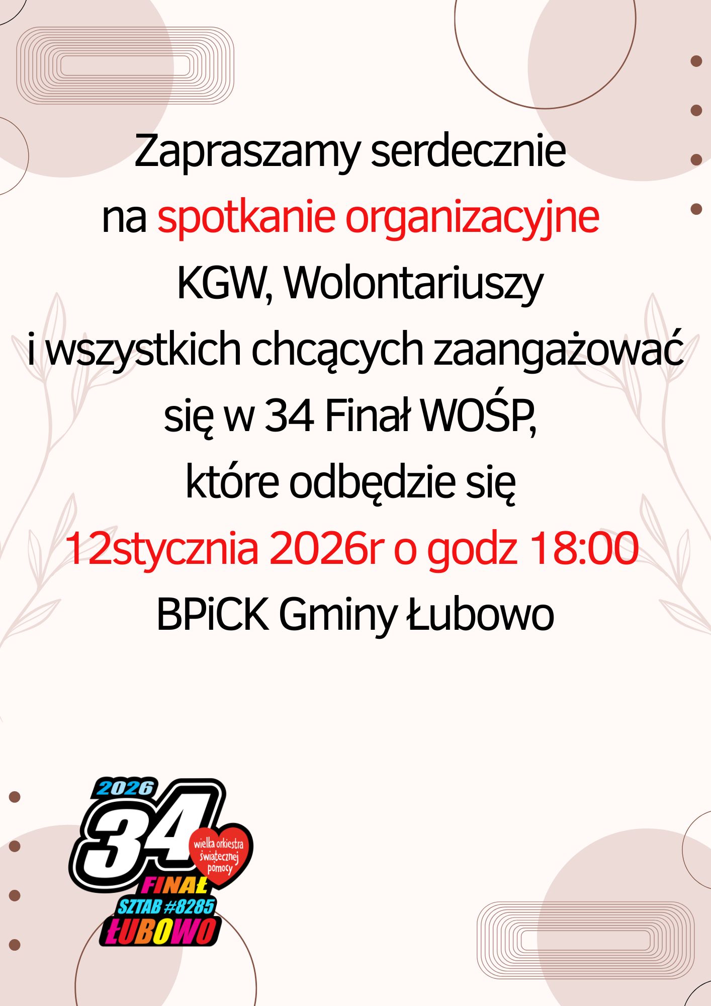 Spotkanie organizacyjne 34. Finału WOŚP
