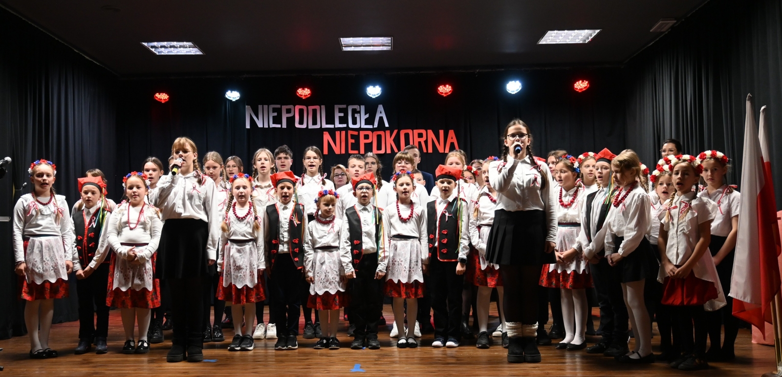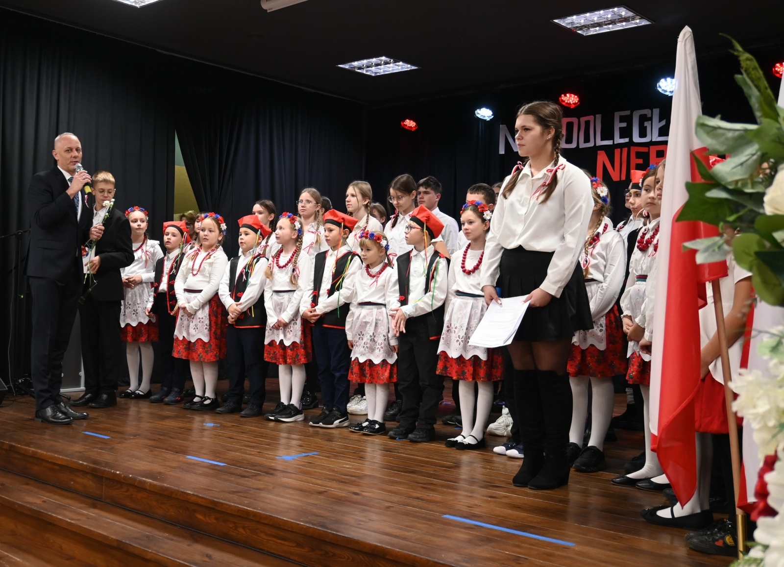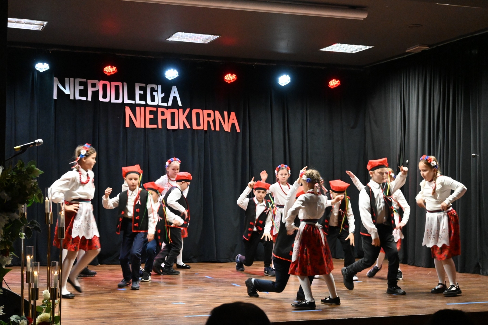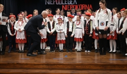 Po uroczystej liturgii uczestnicy przenieśli się do Biblioteki Publicznej i Centrum Kultury w Łubowie, gdzie odbył się spektakl patriotyczny przygotowany przez dzieci i młodzież ze Szkoły Podstawowej Tysiąclecia im. Mieszka I w Lednogórze. Młodzi artyści z zaangażowaniem i sercem przypomnieli najważniejsze wydarzenia z historii naszego kraju, wzbogacając występ recytacjami, śpiewem i symboliką narodową.