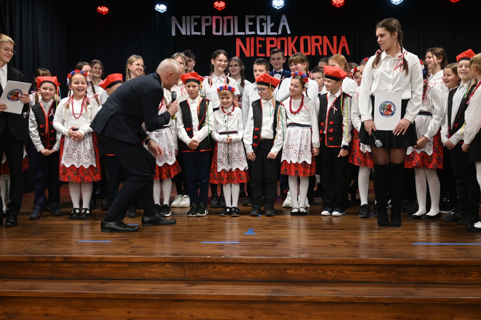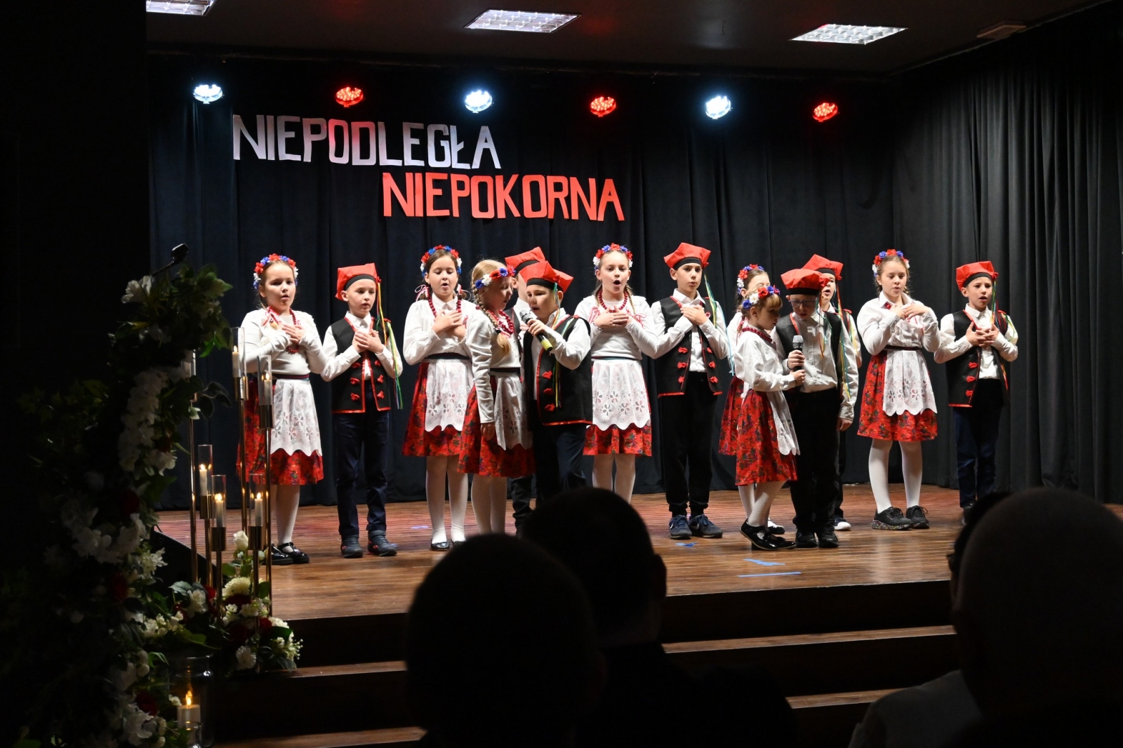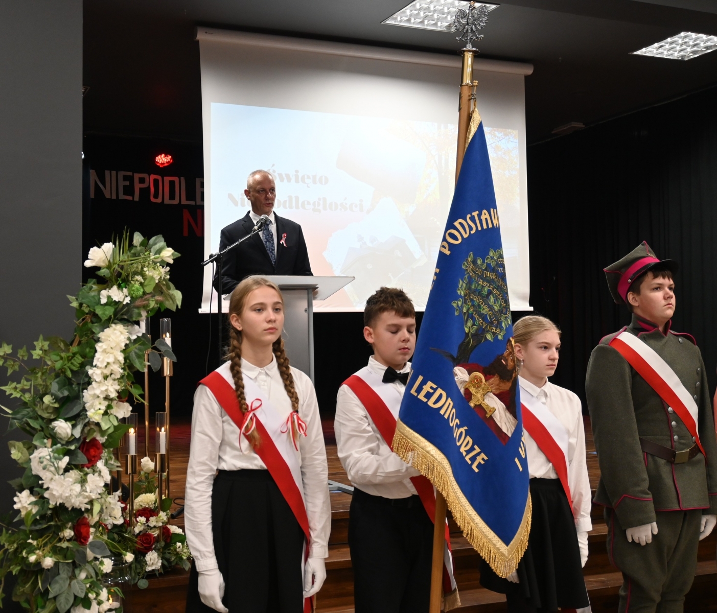 Po uroczystej liturgii uczestnicy przenieśli się do Biblioteki Publicznej i Centrum Kultury w Łubowie, gdzie odbył się spektakl patriotyczny przygotowany przez dzieci i młodzież ze Szkoły Podstawowej Tysiąclecia im. Mieszka I w Lednogórze. Młodzi artyści z zaangażowaniem i sercem przypomnieli najważniejsze wydarzenia z historii naszego kraju, wzbogacając występ recytacjami, śpiewem i symboliką narodową.