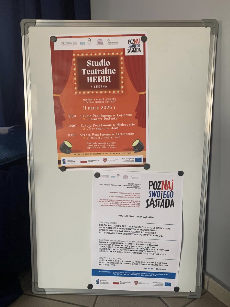 Projekt „Poznaj Swojego Sąsiada”, realizowany na obszarze działania LGD Trakt Piastów, jest współfinansowany ze środków Funduszy Europejskich dla Wielkopolski 2021–2027 (EFS+).
