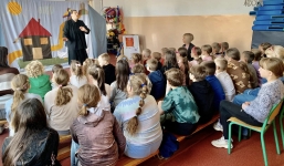 Uczniowie z oddziału przedszkolnego oraz klas 1–4 Szkoły Podstawowej im. Stulecia Odzyskania Niepodległości w Łopiennie obejrzeli przedstawienie pt. „Szewczyk Dratewka”. To ponadczasowa baśń ukazująca wartość dobroci, odwagi, uczciwości oraz niesienia pomocy innym.