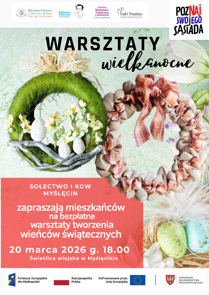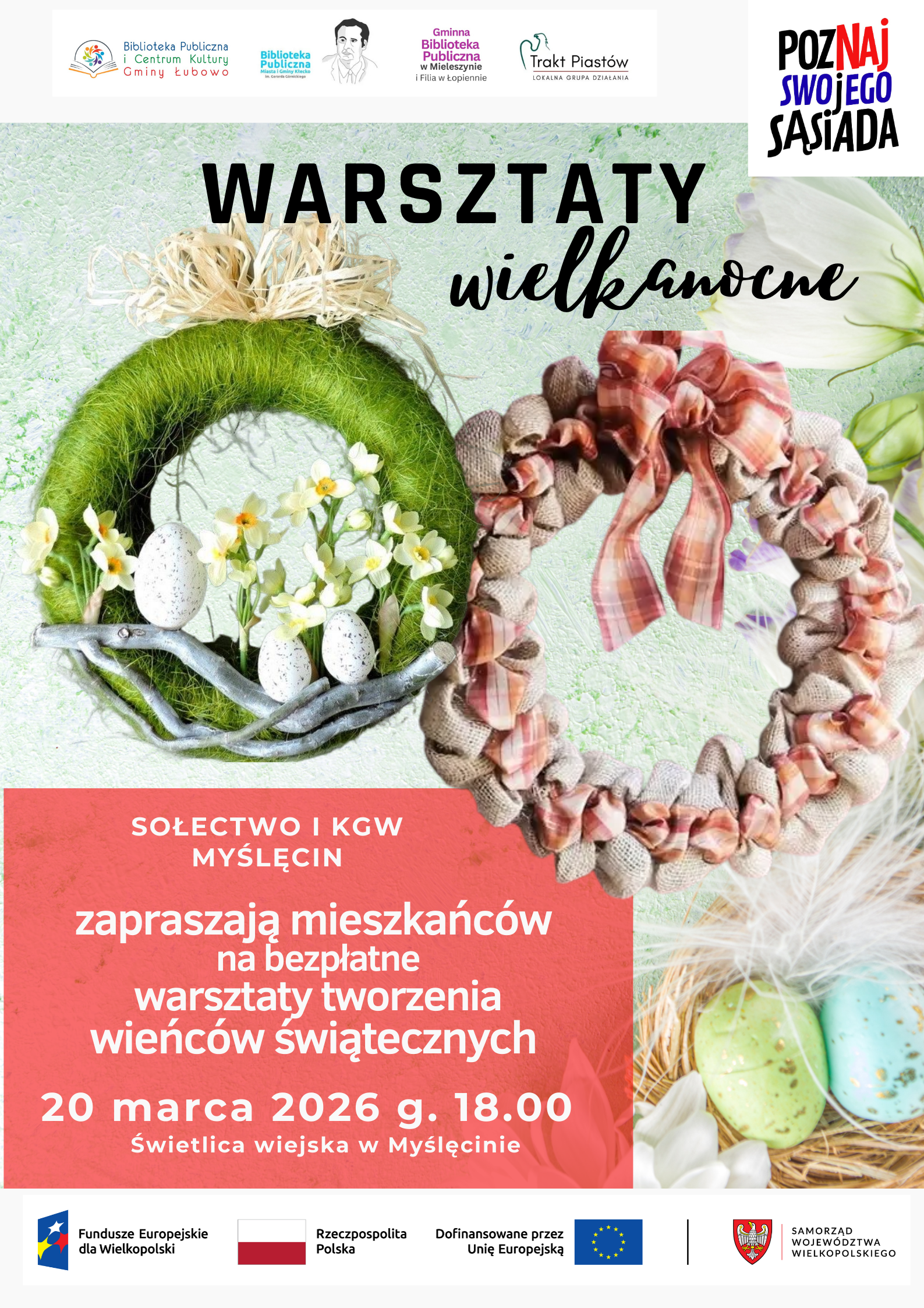 Sołectwo Myślęcin zaprasza mieszkańców na bezpłatne warsztaty wielkanocne, które odbędą się 20 marca. Spotkanie obejmuje tworzenie świątecznych wieńców z wykorzystaniem materiałów florystycznych i dekoracyjnych. Warsztaty mają charakter międzypokoleniowy, rozwijają zdolności manualne i pobudzają kreatywność uczestników.