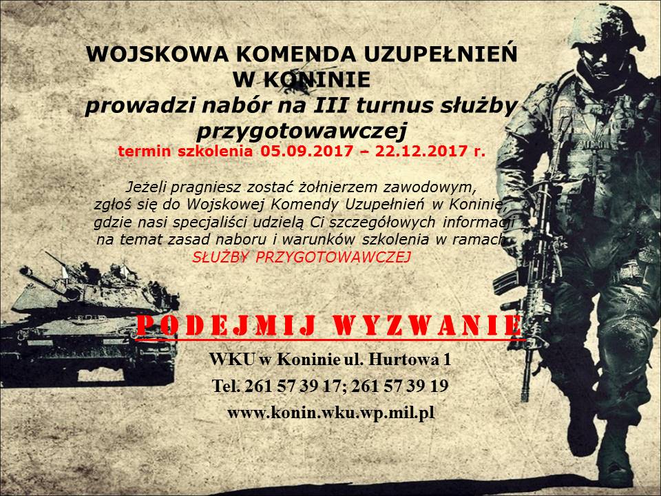 WKU Konin prowadzi nabór kandydatów na III turnus służby przygotowawczej w korpusie szeregowych