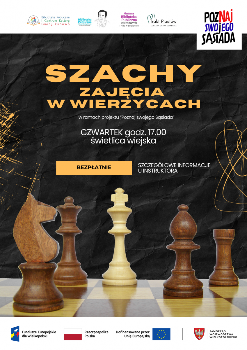 Zajęcia szachowe są częścią projektu „Poznaj swojego Sąsiada”, współfinansowanego ze środków Europejskiego Funduszu Społecznego Plus (EFS+) w ramach programu Fundusze Europejskie dla Wielkopolski 2021–2027. Partnerami projektu są: Biblioteka Publiczna Miasta i Gminy Kłecko oraz Gminna Biblioteka Publiczna w Mieleszynie.
